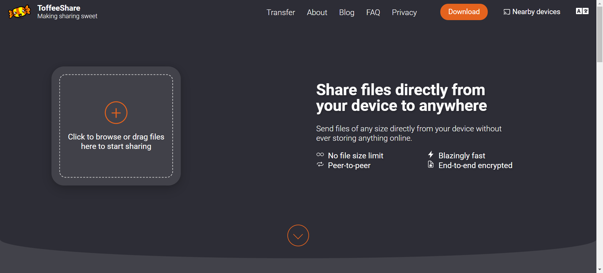 تToffeeShare یک سرویس ساده و بدون ثبتنام است که به شما این امکان را میدهد که فایلهای خود را بر روی اینترنت به اشتراک بگذارید و یا فایلهای دیگران را دریافت کنید.